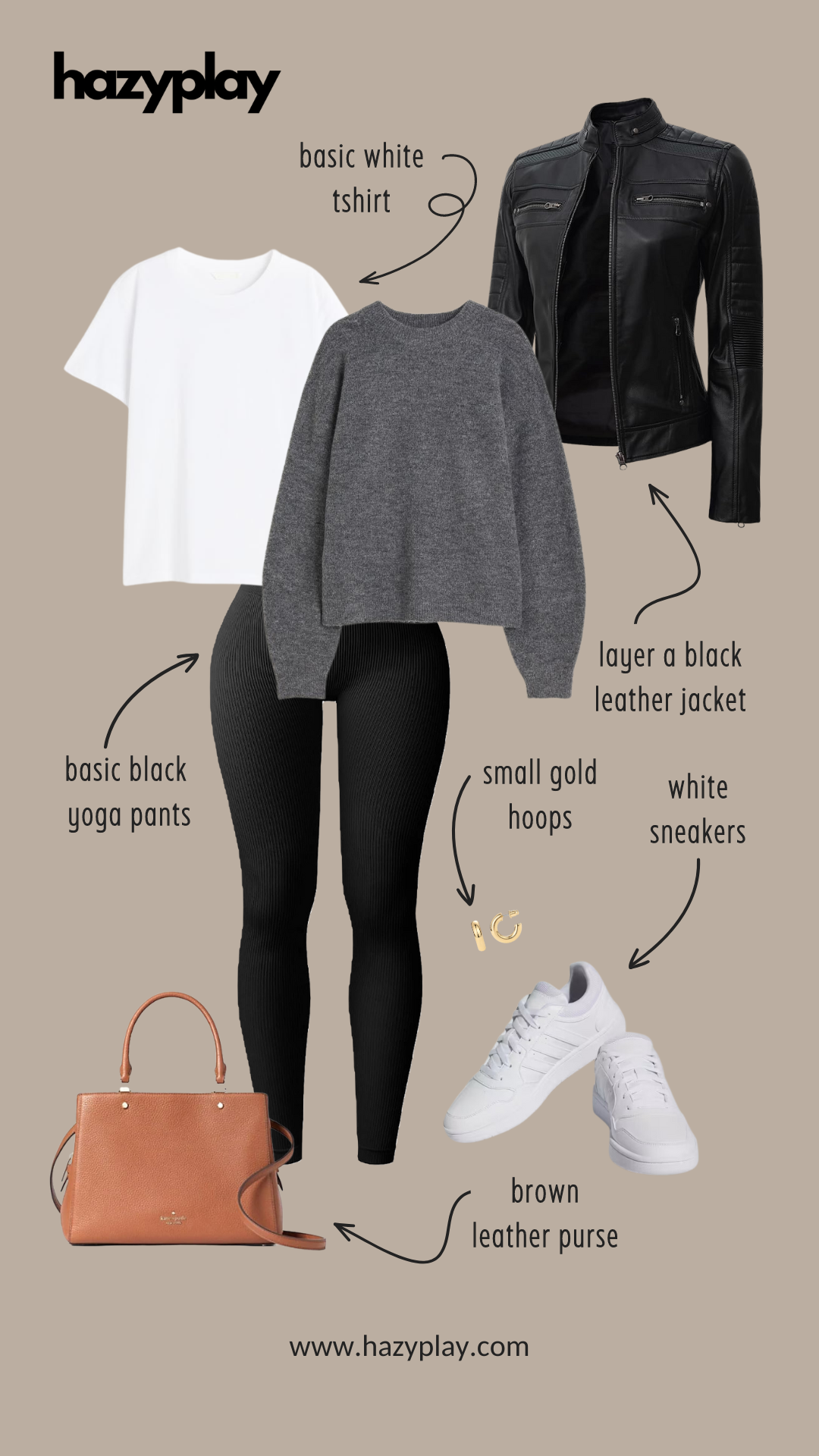 This look can be switched up really easily with other items from your capsule closet too! I’m a big fan of this Hanes grey hooded sweatshirt, which also fits perfectly under the Decrum leather jacket.